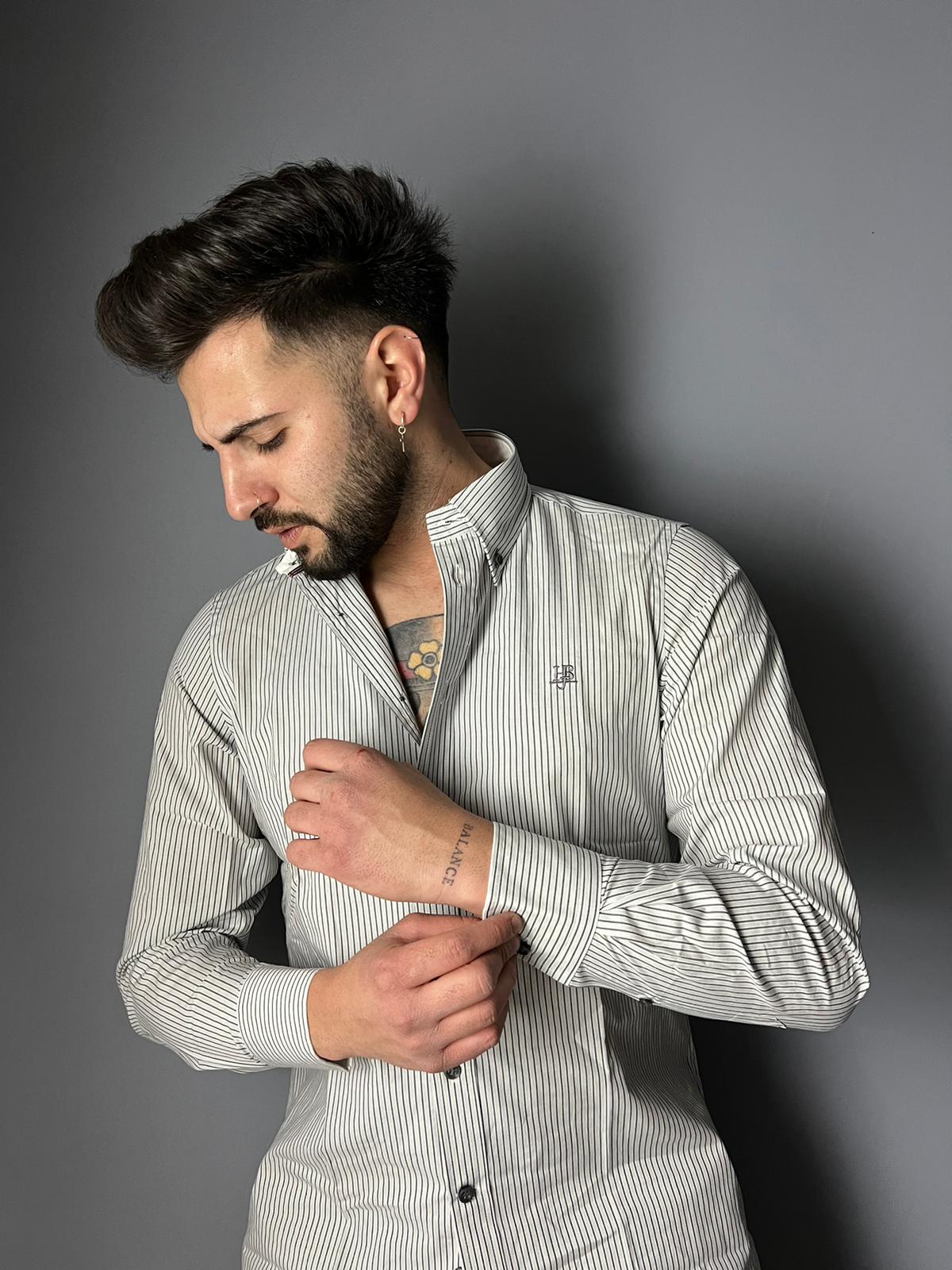 Harmont & Blaine Jeans Men Black & White Striped Shirt